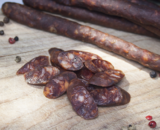 Acest produs se vinde la BUCEste un produs special, preparat din carne de cerb, cu o compoziţie omogenă, umplută în maţe de oaie şi tratat prin afumare şi fierbere, rezultând un produs cu gust unic. Conţine carne de calitate superioară, condimentată cu un amestec de condimente interesante, de nucşoară, piper alb şi coriandru. Se consumă caldă, cu hrean sau muştar.