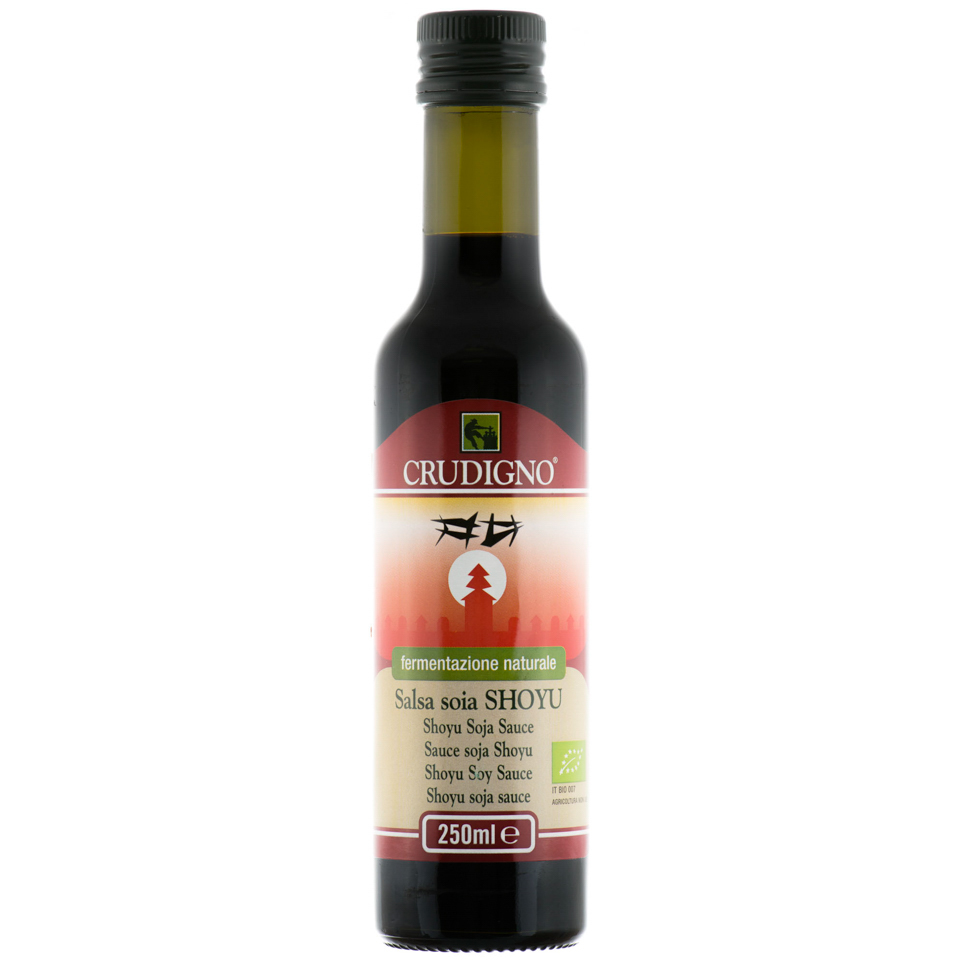 Daca vrei sa adaugi o aroma de carne mancarurilor tale, foloseste sosul de soia Shoyu bio de la Crudigno. Inventat in China, acesta a fost dus in Japonia in secolul al VII-lea de catre calugarii budisti, iar in timpul lui Louis al XV-lea a patruns si in Europa, fiind considerat un dressing rar si pretios. Delecteaza-te cu acest sos special, preparat prin fermentarea boabelor de soia (organice si nemodificate genetic) in butoaie speciale, timp de sase luni. Se poate folosi la sezonarea legumelor,carnii, pestelui sau la gatit.